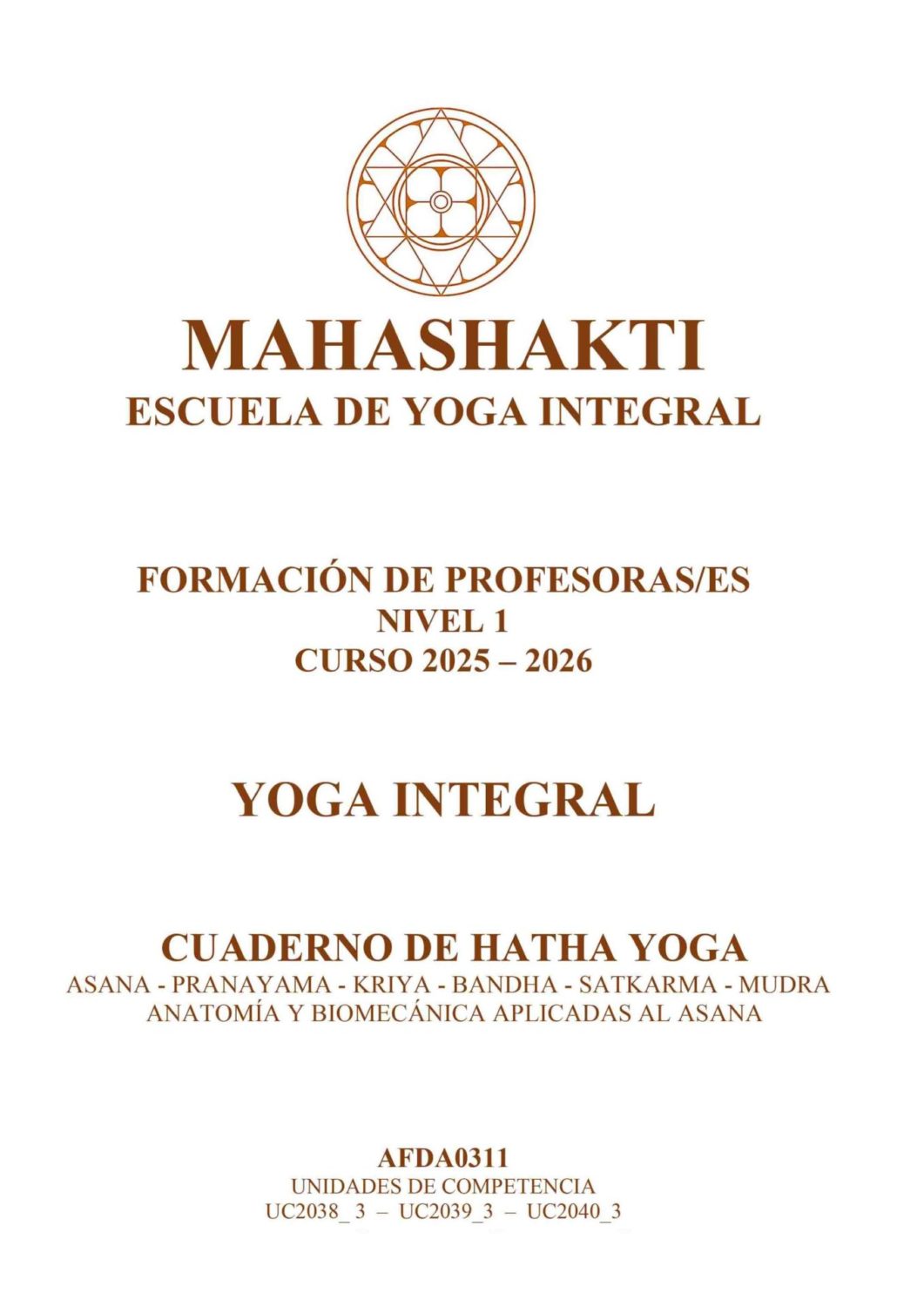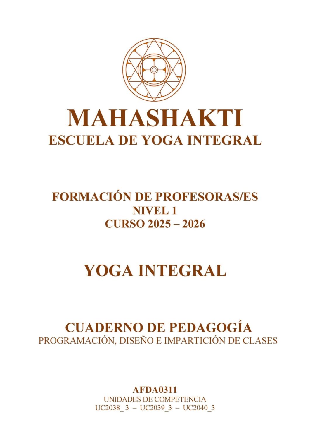 - Cuaderno de Pedagogía. Este cuaderno ofrece una compacta metodología para que la futura profesor/a disponga de los recursos que le facilite programar, diseñar e impartir clases de Yoga Integral con seguridad y eficiencia.