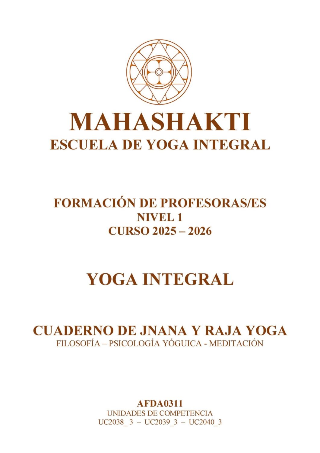 - Cuaderno de jnana y raya yoga. Este cuaderno alberga las materias de filosofía yoguica, teoría y práctica de la meditación y psicología yóguica.