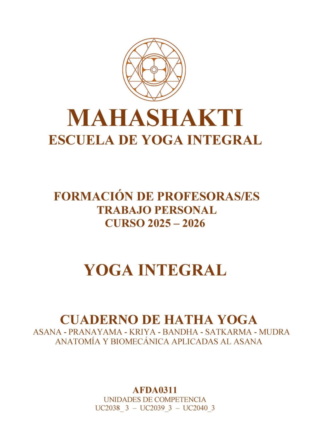 • Cuaderno de hathayoga. En él se encuentran las lecciones teóricas, 76 fichas específicas de asana, 9 secuencias de asana, el suryanamaskar, la descripción de los pranayamas y kriyas, explicación de los mudras y las lecciones teóricas de anatomía.